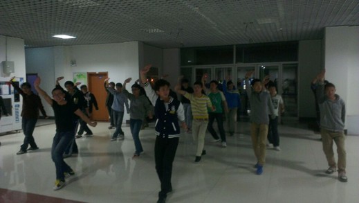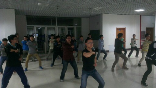 紧张有序的训练在每天19:00拉开序幕,首先,由2012级参加上届运动会三路长拳比赛的学长向队员们讲述动作要领,并通过亲身示范形象地展示细节上需要注意的方面。随后,在学长的带领下,全体三路长拳团队队员整齐划一地列好方阵,认真进行了多达十余次的整套动作的演练。在紧凑有力的伴奏声中,每一位队友都热情满满,毫不懈怠,力求把每一个动作做到精准到位,虽然训练量较大,但没有一个队员喊苦叫累,团队凝聚力得到了充分的彰显。每次训练历时一个多小时,最终在团队队友相互分享动作心得的交流沟通中落下了帷幕。