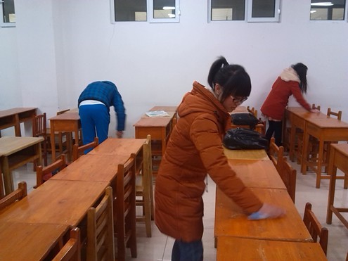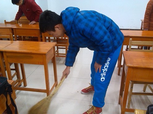 分团委志愿服务部全体成员的带领下义务打扫了中心校区李四光教学楼部分教室的卫生。在活动中,志愿者们不怕脏不怕累,分工明确,秩序井然,一部分负责扫地,一部分负责摆置桌椅,每到一处同学们都细致耐心的打扫,就连教室的窗台和垃圾桶都打扫的一尘不染,没有放过任何的死角。同学们之间的相互帮助配合让清扫工作进行得非常顺利,志愿者们经过近一个小时的辛勤劳作,终于让李四光楼的教室焕然一新,志愿者们不仅收获了助人为乐的喜悦,更赢得了师生们的一致好评。