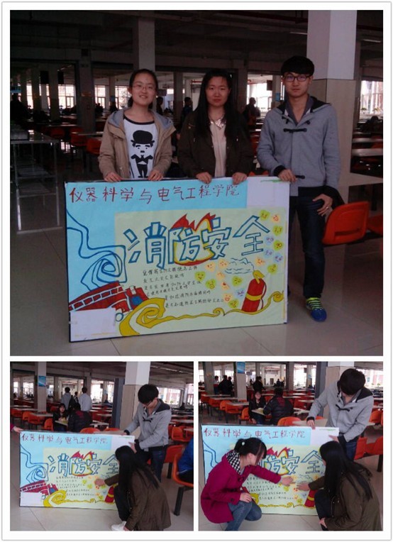 此次活动由学院学生会宣传联络部承办。活动开始,工作人员首先随机地对同学们进行了关于消防相关知识的调查。经调查,百分之六十的同学曾经进行过防火安全的培训,百分之七十的同学具有日常防火意识,百分之八十的同学知道发生火灾怎么逃生。有些同学指出,我校消防设施体系较为完善,在学校每年组织防火演习中受益颇深,并表示对我校消防工作很信任很满意。而后,同学们纷纷在我院分团委、学生会准备的消防安全宣传板上留言,“校园安全人人有责”、“安全的生活与学习,需要学校和同学的共同努力”、“消防知识记我心,校园安全靠大家”等等,都表现出同学们强烈的消防安全意识。