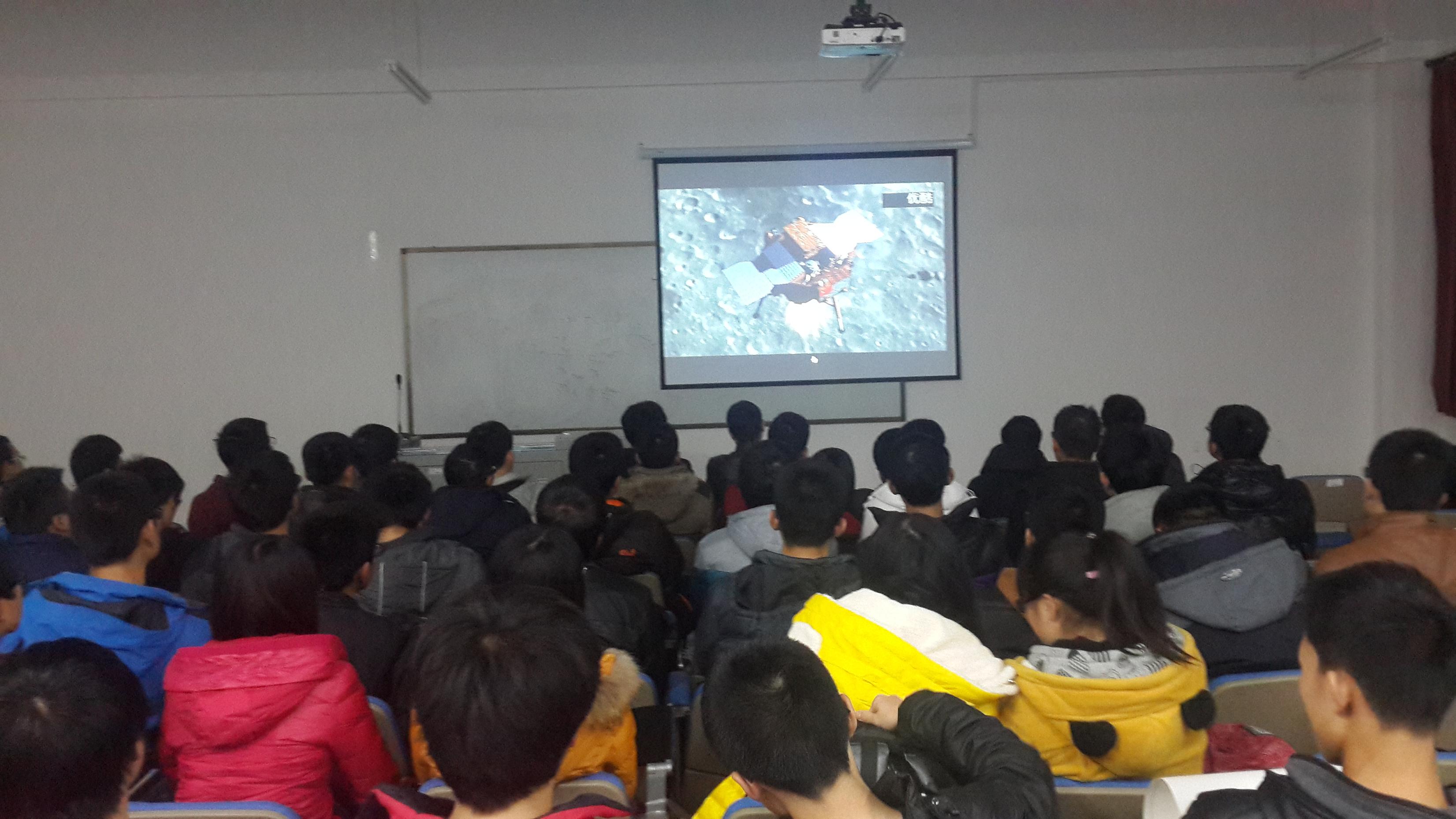 首先,主持人感谢到场各位师生,随后以一部三维动画作为开场白——2013年12月02日,在西昌卫星发射中心,伴随一声巨响,嫦娥三号探月卫星乘坐长征三号乙级火箭拔地而起直指苍穹。动画介绍了嫦娥三号的飞行轨迹及登月计划,着重介绍月球车的软着陆及探月工作,生动又形象的带领大家一起走上探月之旅。就在众人感叹科技伟大之时,画面出现了一位正襟危坐,认真工作的航天工作人员,而他,就是此次学习报告会的主角——杨加东。看着图片,主持人开始对这位校友进行介绍,来自保山市施甸县的杨加东,2005年6月从色情短剧
