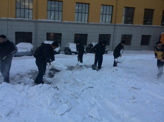 2011级各团支部成员在院团委书记、2011级辅导员朱宇的带领下开展了以“冰雪寒冬季 扫雪最美丽”为主题的团日活动,对朝阳校区地质宫停车场、科技之星广场等公共场所开展了集体扫雪活动,美化了校园环境,保障了师生出行。