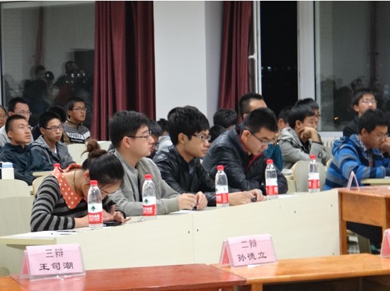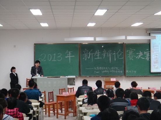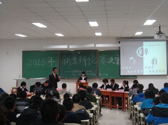团委主办、学院学生会秘书部和Power Speaking口才协会共同承办的2013年新生辩论赛决赛于10月12日18:30在中心校区李四光楼302教室成功举行,院团委副书记、2012级辅导员蔡印老师和学院分团委、学生会、Power Speaking口才协会主要学生干部等出席活动并担任评委,学院全体2013级同学参加了此次活动。