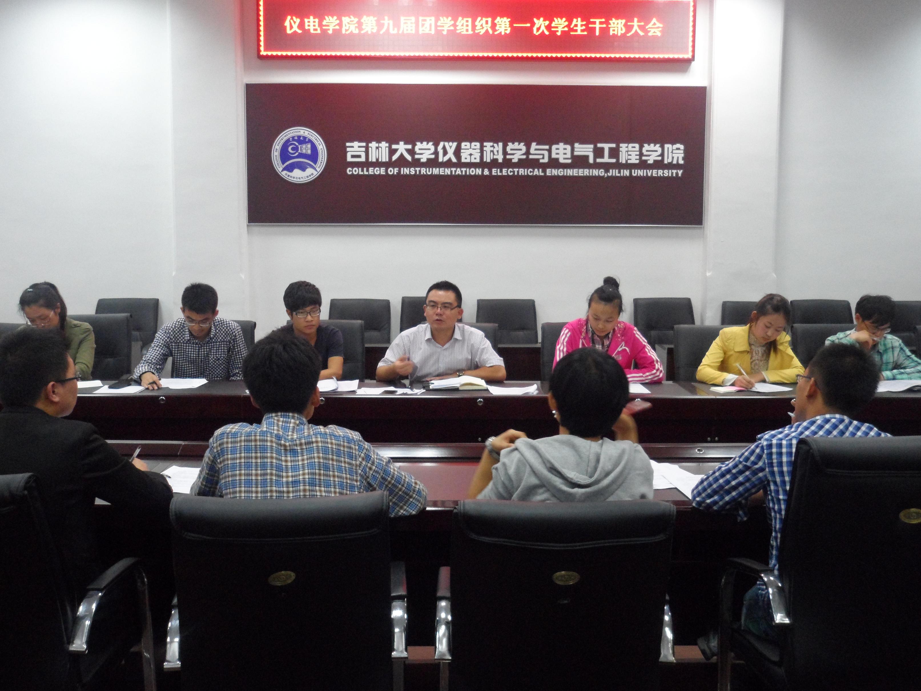 在朝阳校区地质宫330会议室召开了第九届团学组织第一次全体学生干部会议。学院团委书记、2011级辅导员朱宇,第九届分团委副书记孙鹏琨,学生会主席韩哲鑫,副主席王顺月、张楠、徐维以及各部门主要学生干部参加了会议。