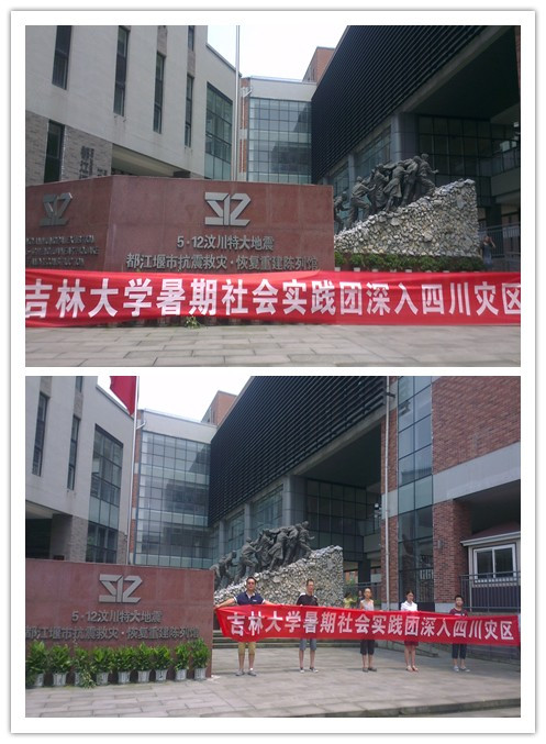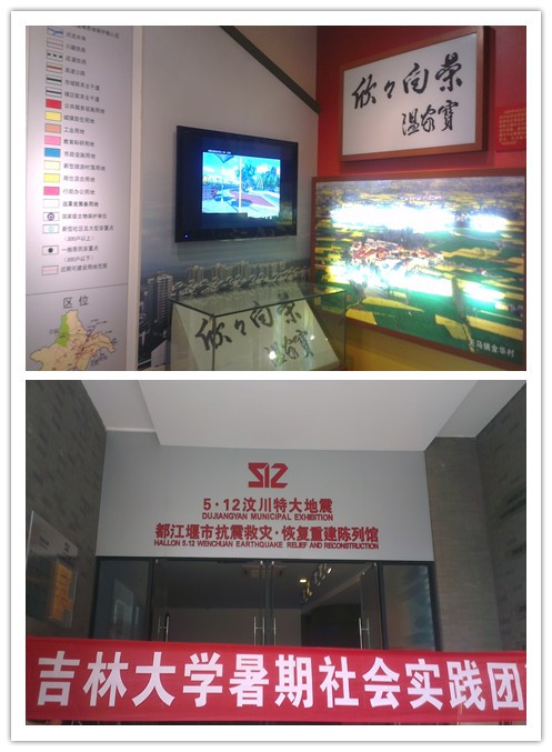 顶着炎炎烈日,社会实践团一行乘车于当天中午到达了四川省都江堰市,随后立即前往参观“5•12”四川汶川特大地震都江堰市抗震救灾·恢复重建陈列馆。在陈列馆门前,许多游客和当地群众看到不远千里来到这里的色情短剧