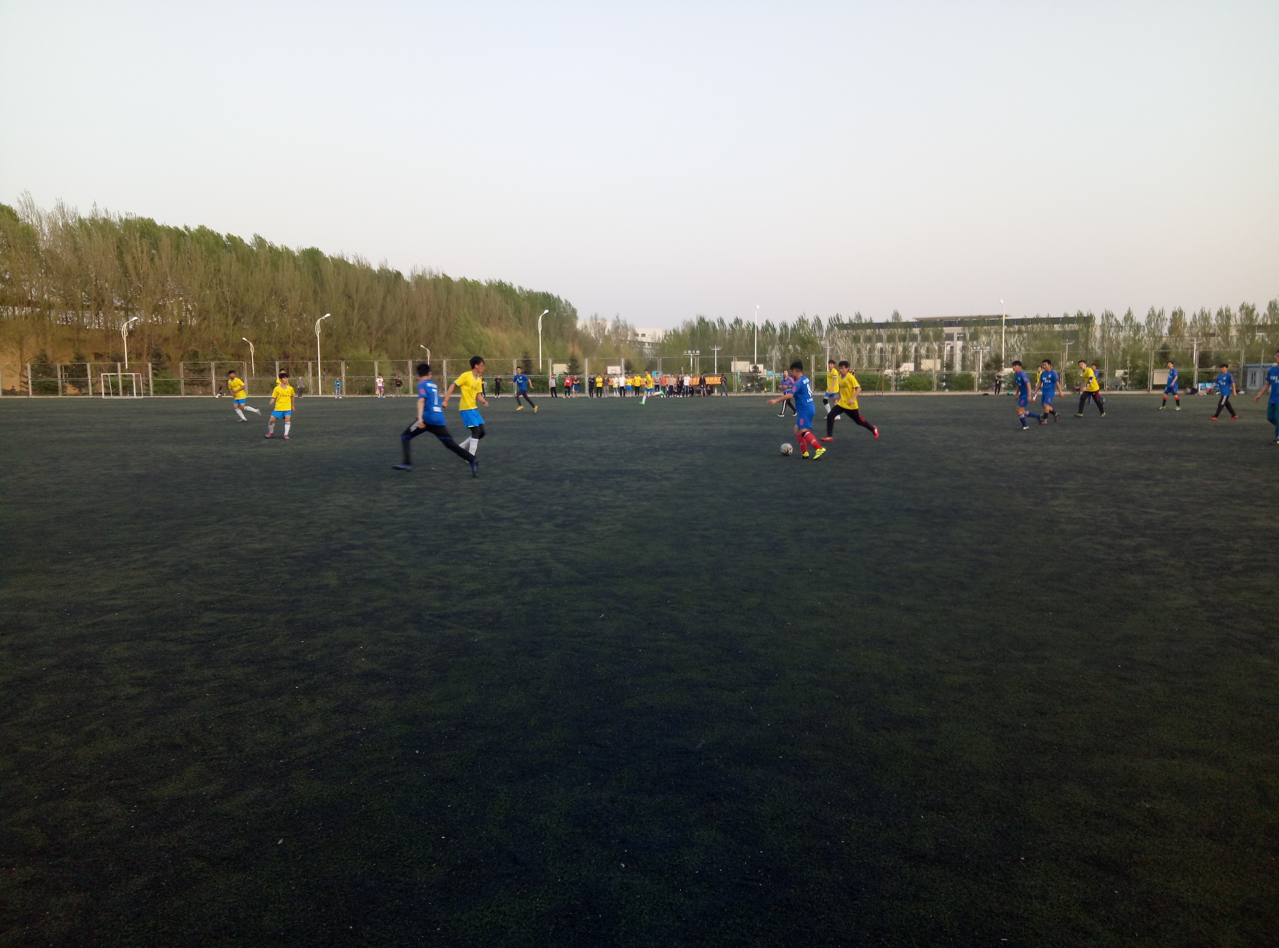 下半场换边再战,在没有自然因素干扰的情况下,我方率先发起了猛烈的进攻,一开场就频繁在对方禁区内制造有威胁的射门。在队员们猛烈攻势下,对方防守开始出现空档,比赛进行到第10分钟,27号队员王钰戈接球突破对方两名队员,射门得分,将比分扳平到1:1。此后,我方士气大振,攻势更为猛烈。但是软件学院作为一支强队,成功化解我方几次进攻之后,找到机会反攻,禁区内制造犯规,此时裁判判罚点球。关键时刻,我方门将吕春旭通过其迅速的反应,成功扑出点球。对方在接下来一次进攻中,又一次制造了禁区犯规,获得了点球,门将吕春旭再次成功将对方的点球扑出。比赛进行至25分钟,我方8号队员张家琦在大禁区外接球后找到空档,一脚势大力沉的远射,直接破门得分,我方2:1反超比分。之后,对方一直在找机会破门,我方队员由于体力不支,防守上稍有怠慢,在比赛结束前10分钟被对方找准机会,扳平了比分,我院最终以2:2的比分战平软件学院。
