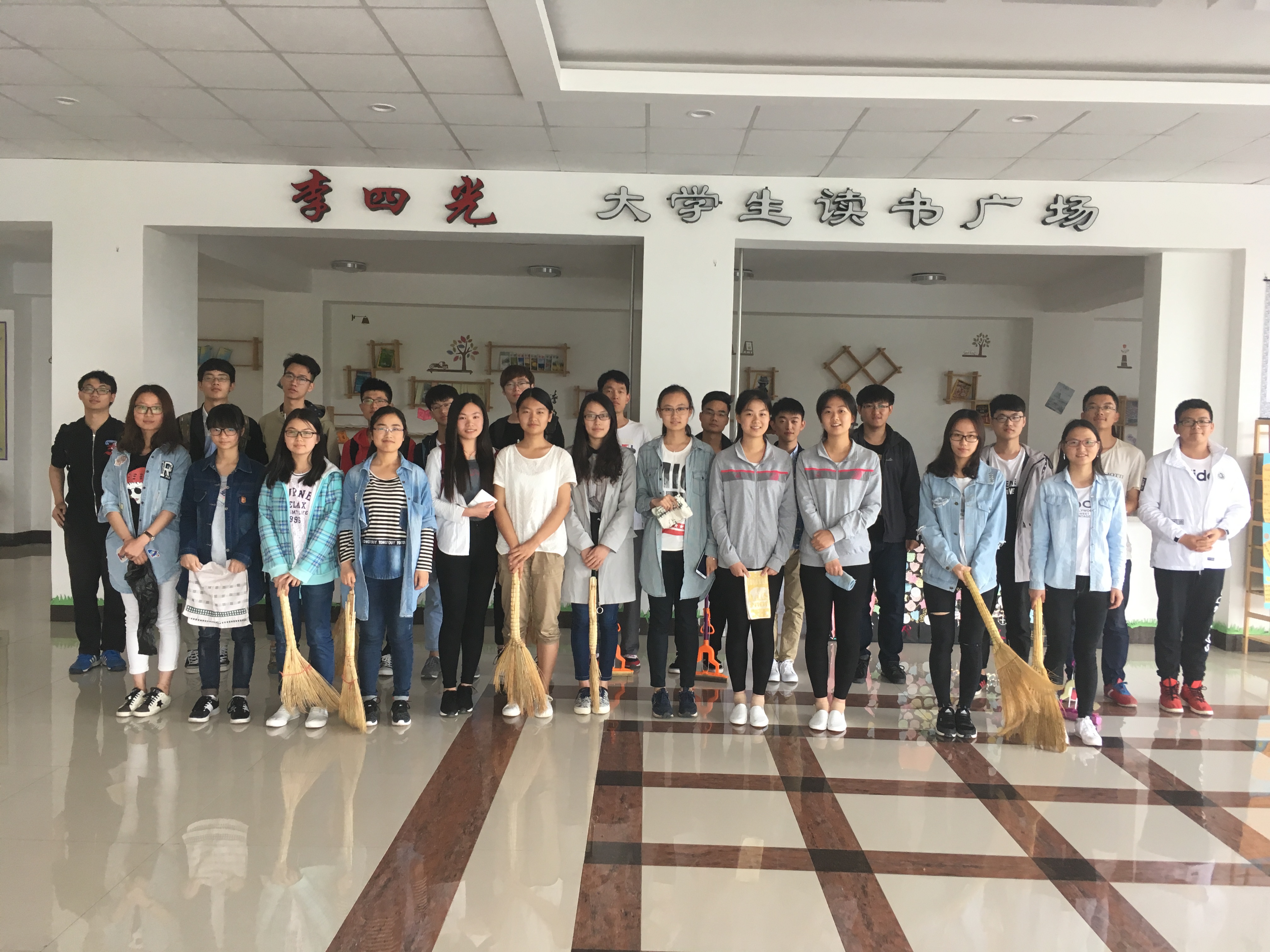 本科生党支部组织2015级的入党积极分子义务打扫李四光教学楼。该教学楼是我院学生主要的上课地点和学习场所,本着从身边做起的原则,我院入党积极分子选择在教学楼进行义务劳动。
