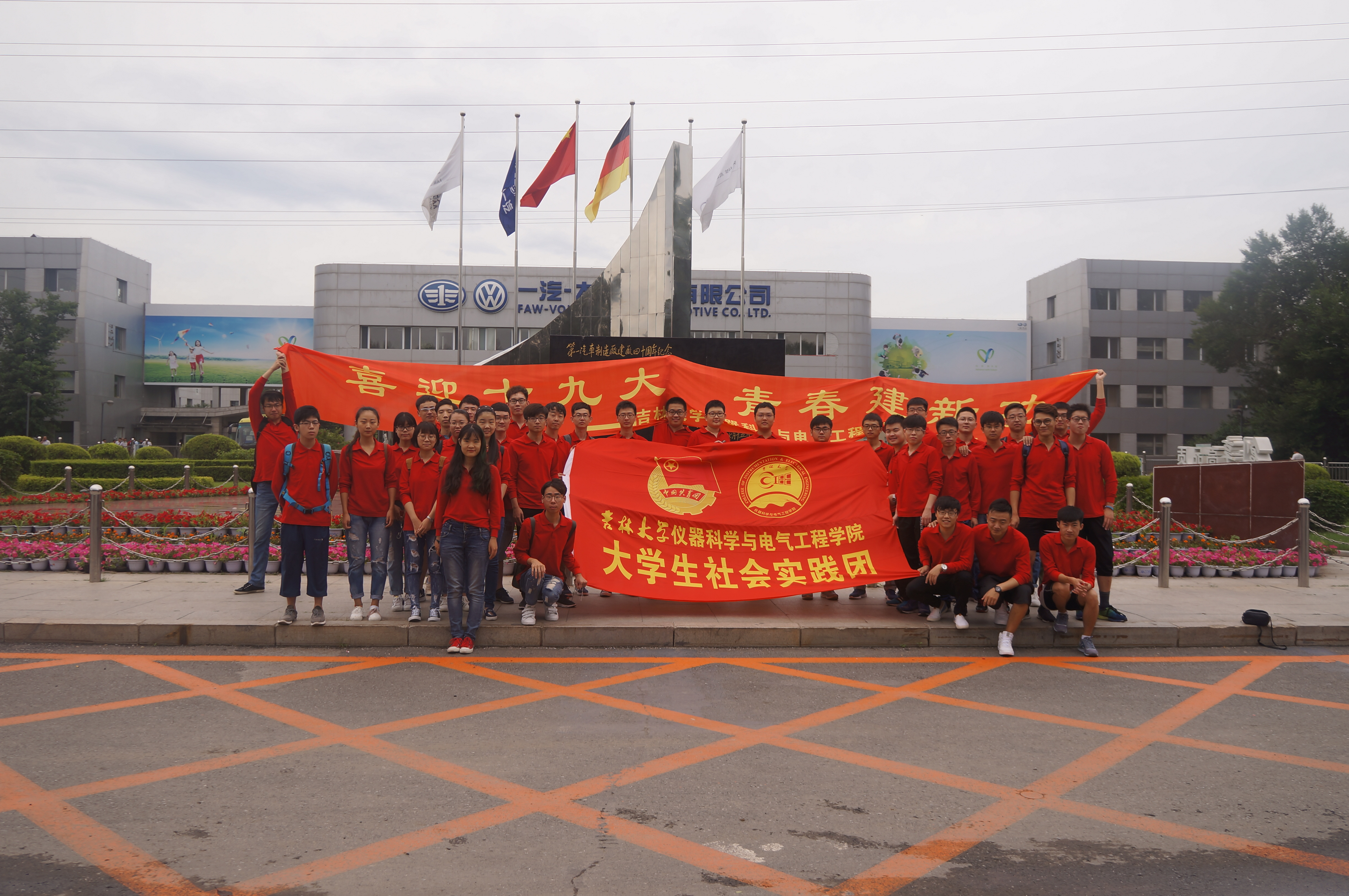 参观结束后,实践团成员在一汽集团的正门口合影留念。同学们纷纷表示学到了不少知识,也对电气工程及其自动化这个专业有了更深的了解,同时对本专业的发展前景充满信心。同学们充分了解了中国一汽制造厂,学到了许多课本上学不到的知识,强化了对理论知识的理解,让它们更贴近实际的生产生活。希望同学们通过本次实习参观,积极投身到振兴中国制造的奋斗进程中去,在今后的学习工作中脚踏实地,勇攀高峰,为祖国的科技发展贡献青春与智慧!