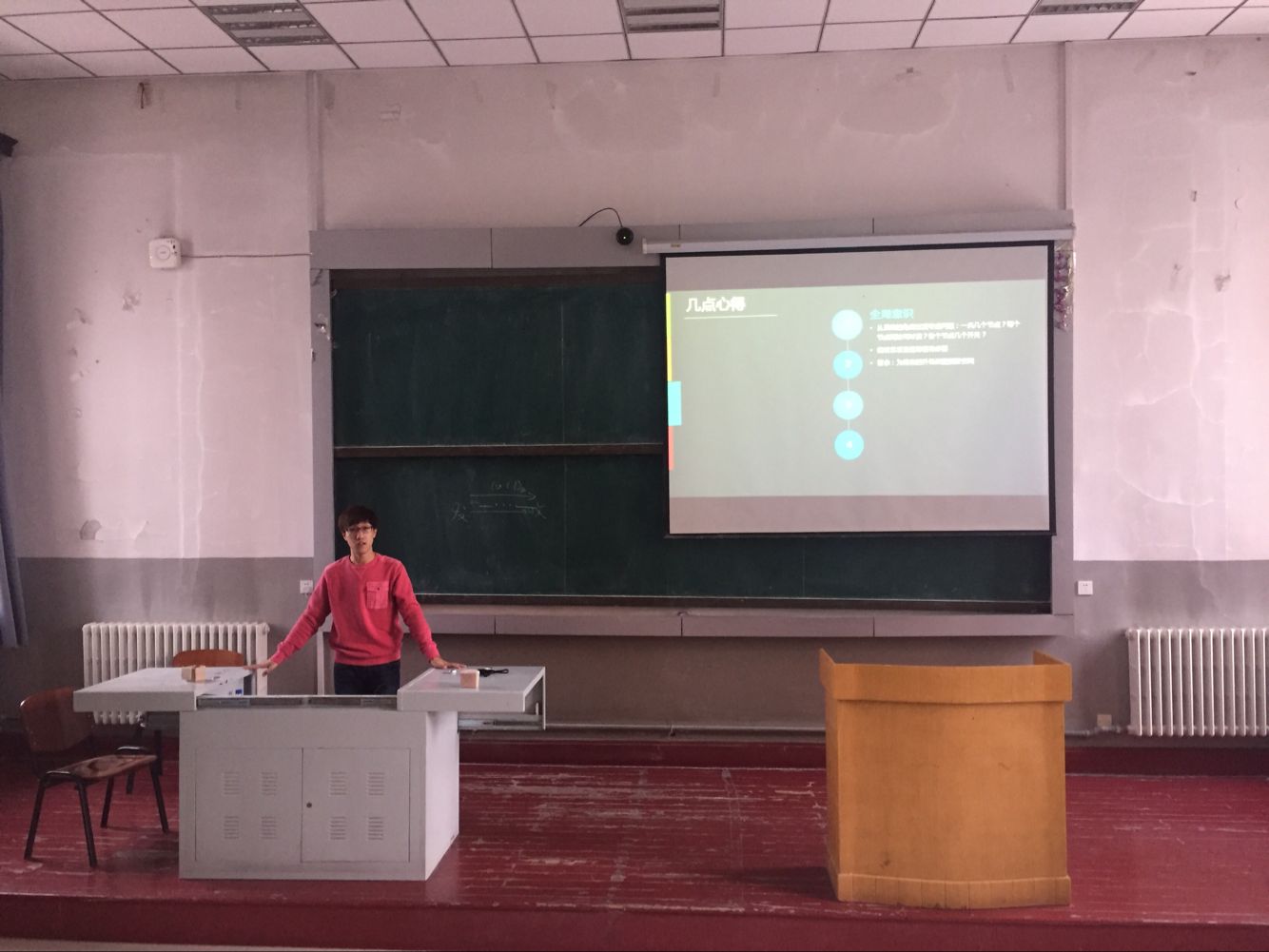 首先由左濂锐学长进行报告,报告题目是《2015年国赛G题—短距视频信号无线通信网络》。主讲人用提问的方式逐步介绍他们所完成的国赛题的内容,方式新颖而且引人入胜,赢得在场观众的阵阵掌声。接下来,第三组组长蔡姗姗学姐向在场的观众讲解了他们组作品的基本原理,并配上精美的小视频作为解说,生动而且形象。之后,王政学长向在场的观众介绍了他们组的软件方案,同时和在场的各位分享了他编写程序的经验。三位还就比赛中的心得体会与在场的同学进行分享。最后进行提问环节,李老师加入其中为观众解答疑惑。本次沙龙就在这一问一答中圆满结束。