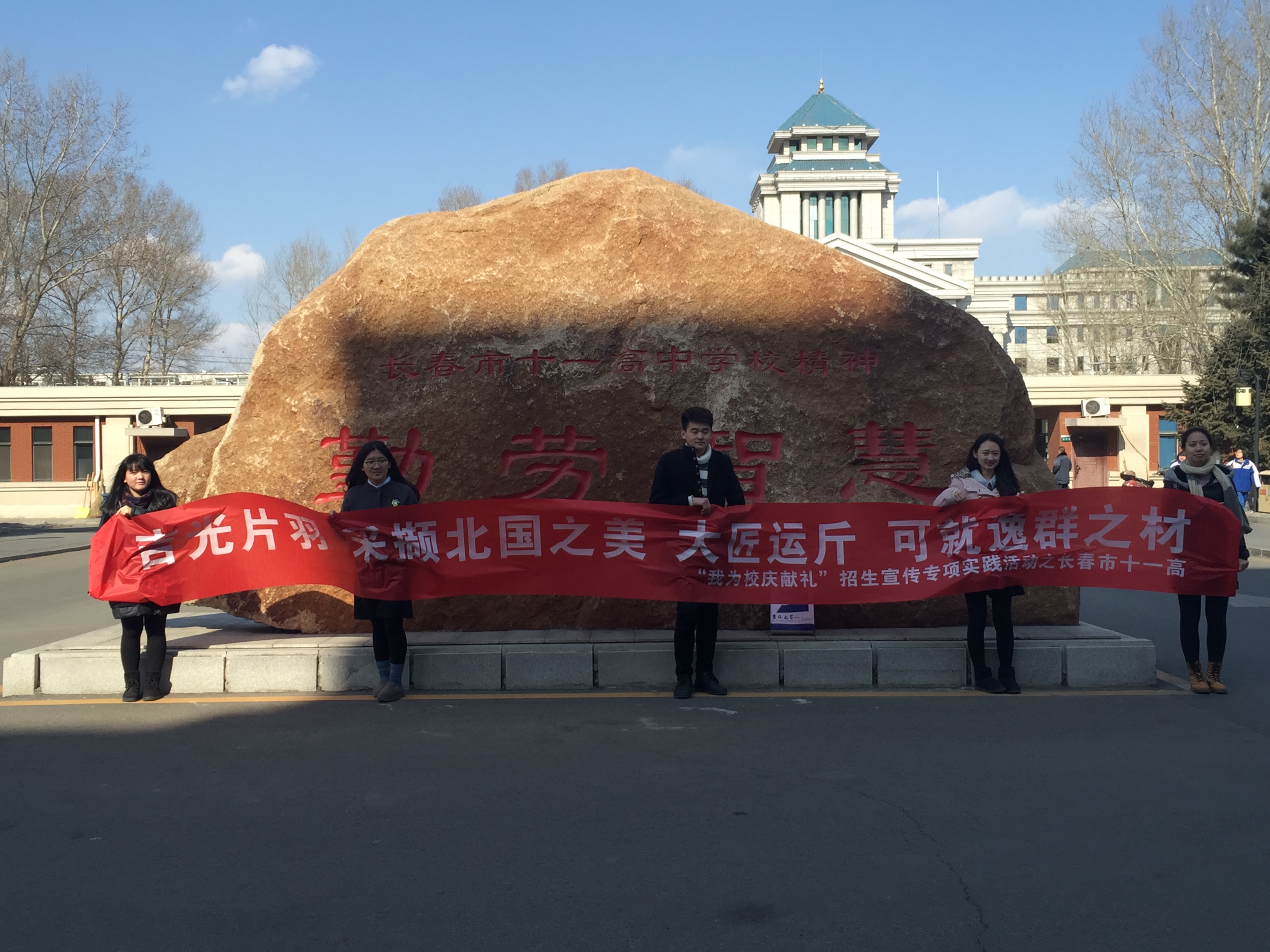 “我为校庆献礼”招生宣传专项实践活动队员走进长春市十一高中进行宣传,十一高29班,30班全体师生参与了这次活动。