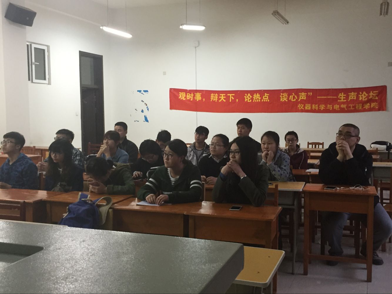 学生会秘书部于2016年4月19日18:00在李四光楼313教室开展了生声论坛第十八期活动,活动以“谈南海军事,论谁与沉浮”为主题,651502团支部和秘书部的成员们参加了本次活动。