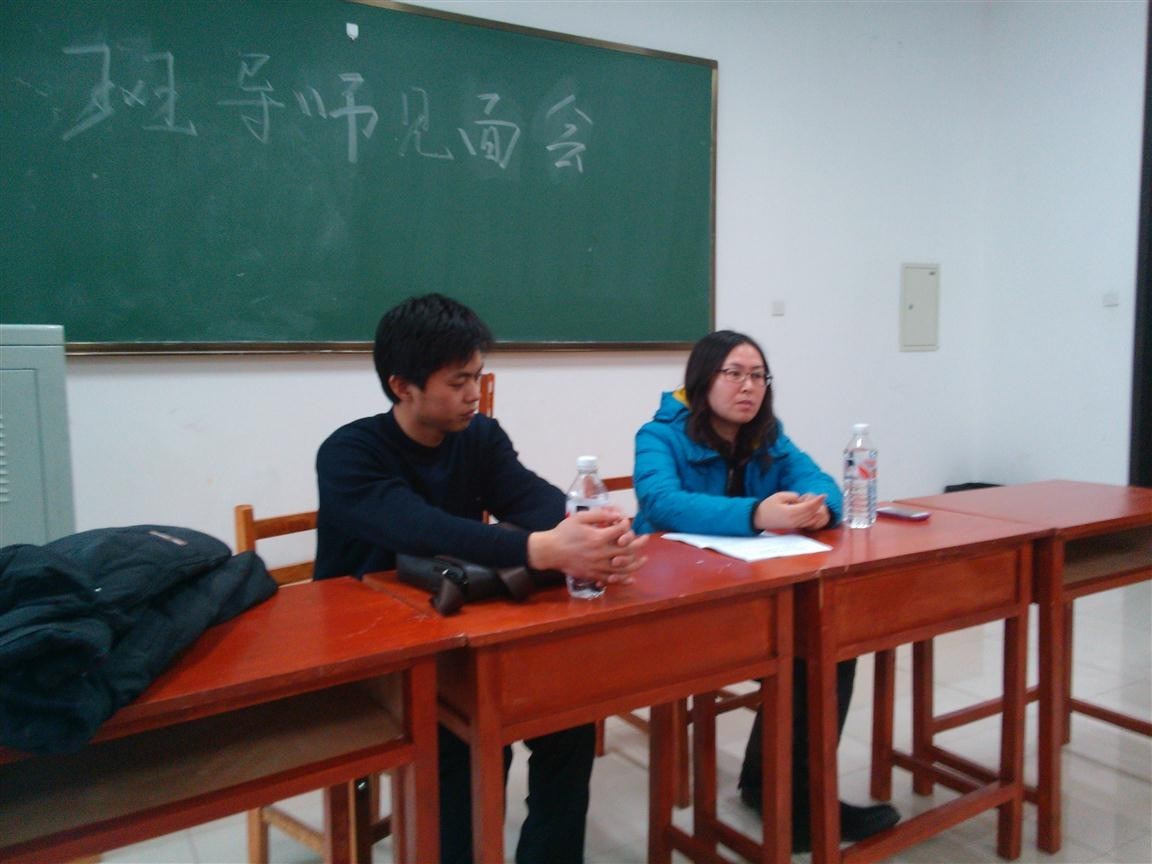 会上,651102班班长王顺月同学首先向二位老师汇报了班级上学期的学习和工作情况,二位老师对651102班在上一学期各方面取得的进步感到高兴。随后,田宝凤老师首先细致地为大家讲解了学院本科生创新能力个性化培养计划“六个一”工程的各项内容,并介绍了各项内容的具体要求和完成方式。刘长胜老师鼓励同学们积极主动地学习,不断提高自己的创新实践能力,并鼓励大家踊跃报名参加即将举办的2013年色情短剧