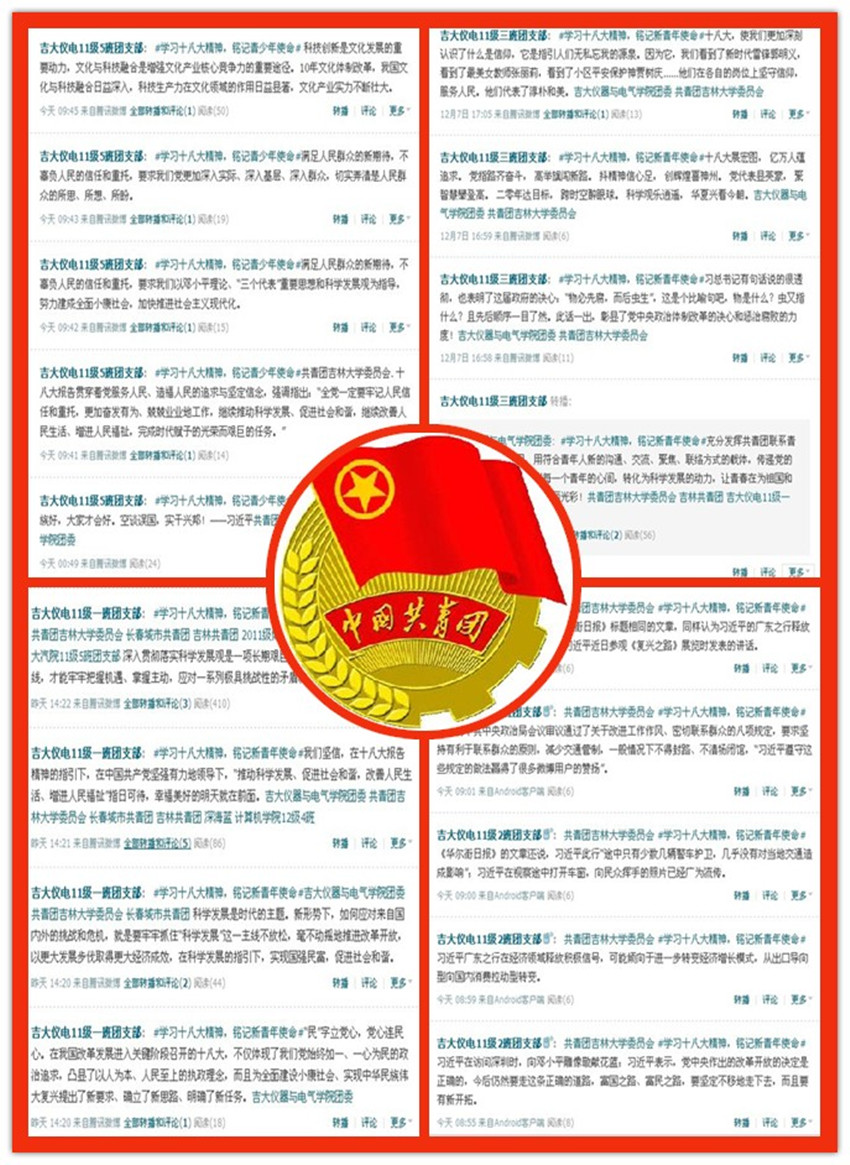 自2012年11月19日开始,学院团委组织各班级团支部以“学习十八大精神,铭记新青年使命”为主题开展微博学议十八大活动。此后的二十余天时间里,学院各班级团支部坚持“突出主题,注重创新,结合专业”的原则,积极结合专业知识,从专业角度对十八大进行学习和讨论,充分体现学院和专业特点。截止到2012年12月10日,学院全体团支部累计发布相关主题微博近3000条,被阅读次数累计超过5万余次,被转播超过400次,营造了学习宣传贯彻党的十八大精神的浓厚良好氛围,与学校其它兄弟院系共同掀起了色情短剧