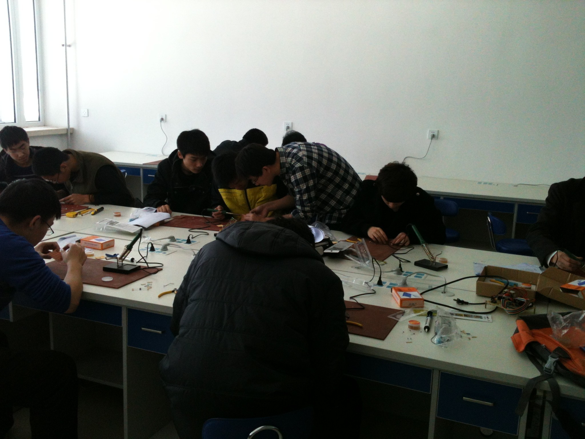 大学生科技协会在中心校区李四光实验楼533实验室举办了2012年第三期电子培训活动,本次培训活动由科技协会会长周鹤同学主持,科技协会副会长高宁等部分成员参加了此次培训活动。