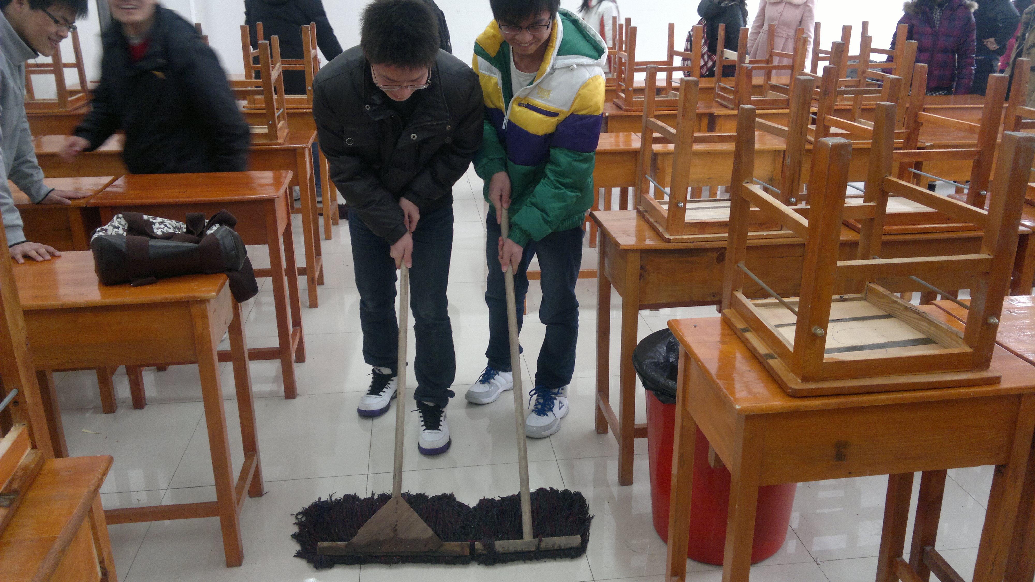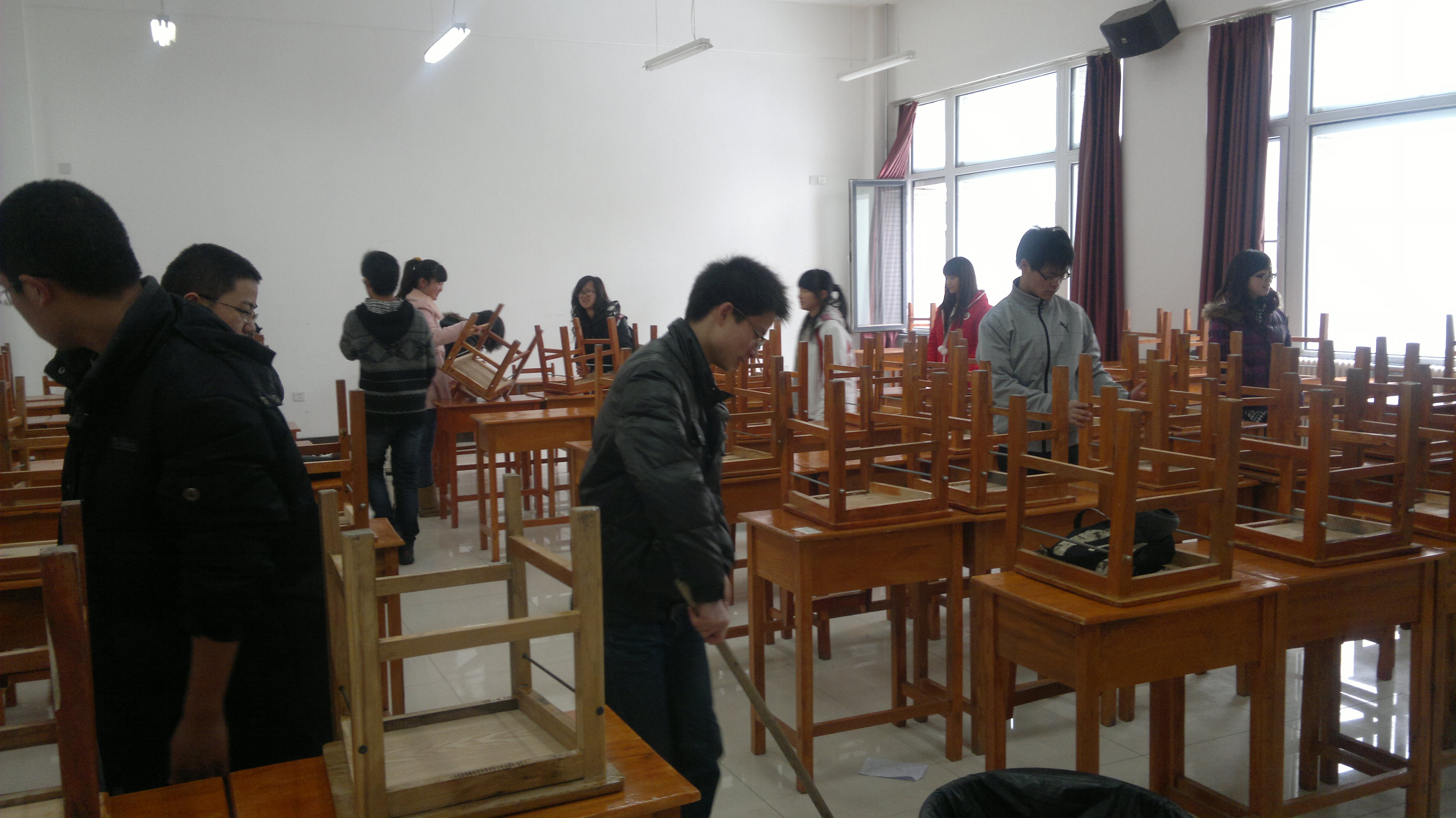 3月10日—11日,2011级3班全体同学在班级团支部的组织带领下,分别来到中心校区李四光楼一至三楼小教室,对教室内卫生进行清理,把教室内桌椅摆放整齐,将小教室内的卫生死角一一清扫干净。同学们任劳任怨、默默奉献的精神感染了在场的师生们,受到了大家的一致赞扬。
