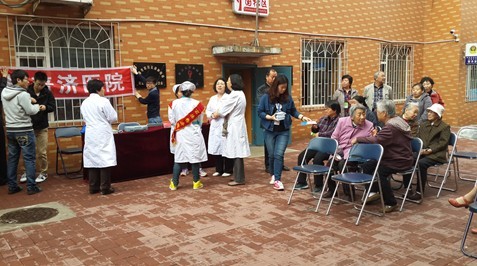 我院志愿者于义诊活动当天早晨8:00准时到达社区义诊活动现场,吉林省普济医院的工作人员为志愿者们介绍了此次活动的目的:一是为了给社区居民提供医疗问题咨询、向社区居民普及医学知识;二是提供简单的身体状况检查,让居民在社区内就可以检测血压。随后,志愿者们开始帮助社区工作人员布置活动现场,帮助吉林普济医院的工作人员张贴宣传条幅,搀扶年纪较大的爷爷奶奶来检测血压,在志愿者们的帮助下义诊活动顺利而有序的进行。最后经过志愿者们的共同努力,本次义诊活动取得圆满成功,大家受到了普济医院和南昌社区工作人员的高度赞扬和衷心感谢。