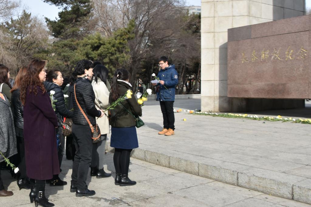 学生党支部联合清和街道办事处带领以学生党员和积极分子组成的志愿者在清明节来临之际赴南湖公园长春解放纪念碑开展了清明祭祀活动。
