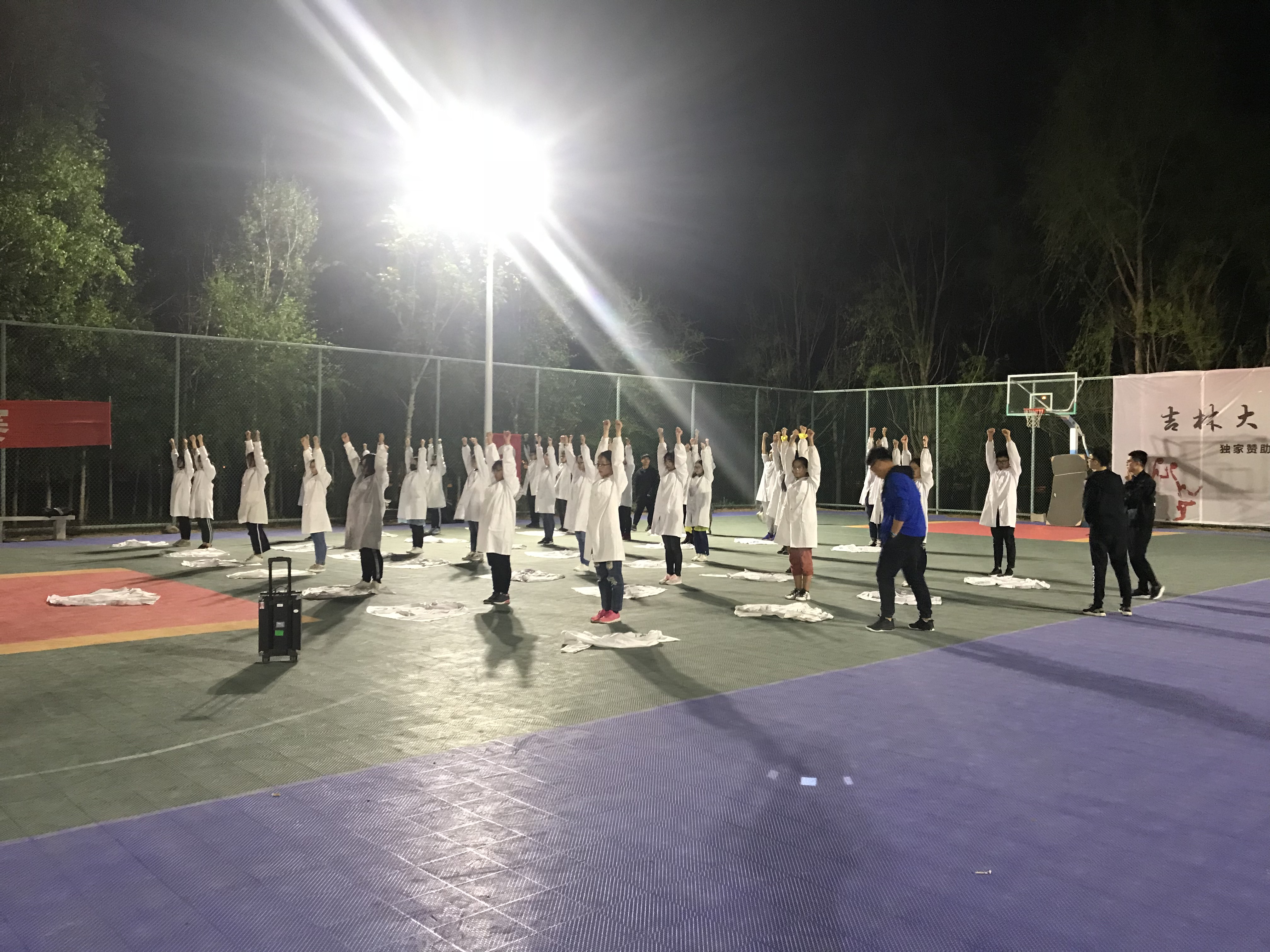 于2018年5月13日晚9:00在中心校区篮球场展开了团体项目的训练工作。