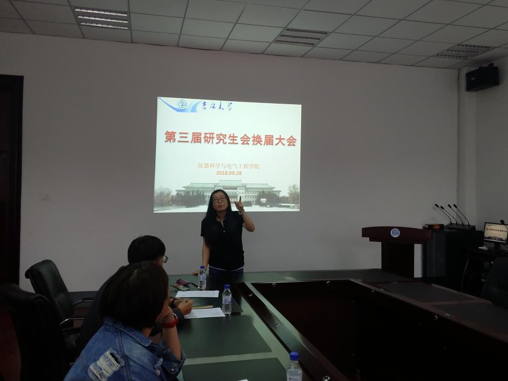 于2018年9月28日14:00在地质宫海光学术报告厅隆重举行第三届研究生会换届大会,开启了我院研究生管理工作的崭新篇章。本次大会由学院研究生办公室主任杨冬老师主持,第二届研究生会干部代表及全体干事出席会议。