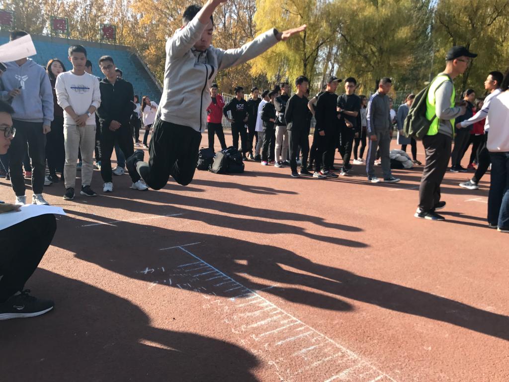 比赛前,同学们在各个领队的引领下进行签到,之后由小个协会的会长主持开幕仪式并预祝同学们取得好成绩。在进行了简短的热身活动后,体育部部长谢家运同学向2018级的同学们传授了以往的比赛经验,1:30比赛正式开始。在相对跳远比赛中,谢家运同学凭借以往的参赛经验并结合自身的优势,在试跳时就取得了2.85米的好成绩,在随后的正式起跳中,只见他调整好呼吸,全身肌肉紧绷,一跃而出,平稳落地后,经裁判员认定成绩有效,取得了2.95米的好成绩。比赛后各组领队带领参赛人员们测量身高,在短暂的统计后公布了成绩,仪电学院的同学们均有着出色的表现,在女子跳高比赛中王瑾同学取得了小组前二十的好成绩,而男子跳远比赛中谢家运同学更是在加权计算后名列小组第一,并成为了男子相对跳远比赛的纪录保持者。