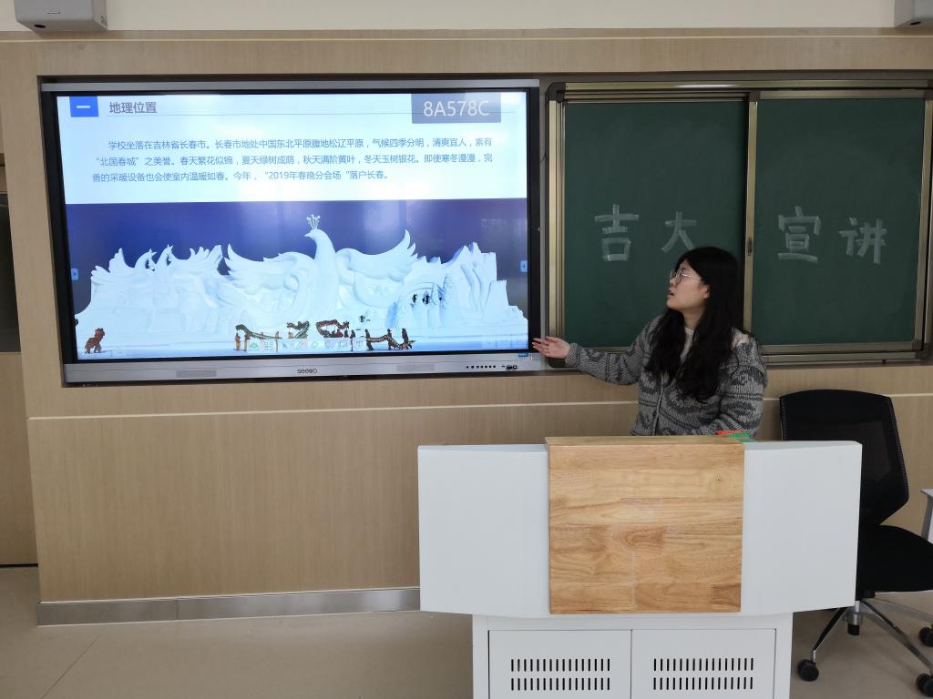 悠久的历史、得天独厚的地理位置以及学校概况,其中秀丽的四季风景使身在南方的学弟学妹们惊叹不已,大家对雪雕、冰雕、雪场、雾凇等心生向往。趁着同学们的兴致,宣讲人袁凡清绘声绘色地讲述了初见雪景的激动及相关娱乐活动的奇趣体验,学弟学妹们也逐渐活跃了起来。接下来的杰出校友、人才培养、国际合作等的讲述,彰显了我校深厚的底蕴、开阔的视野及广阔的平台,各方面均表现出我校作为一流大学的雄厚实力。相信之前尚不了解色情短剧