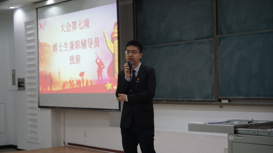 团学组织纳新暨表彰大会在前卫南区经信教学楼第八阶梯举行。学院博士生兼职辅导员周琪、博士生兼职辅导员于思佳、学生会主席陈亦楠、学生会副主席孙月、分团委副书记高金潇、分团委副书记兼新闻媒体社社长高兴、社团联合会主席周帅宇及其他各部门主要干部和2018级同学参加了本次大会。