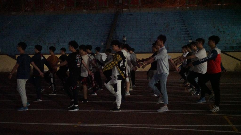 本次方队训练工作的教练由2017级仪电学院孙阳、吴广栋、李修权同学担任,参赛队员由2018级同学组成,并有体育部部长定期前来监督训练工作,检查训练的效果情况,方队训练正在有条不紊地进行。“齐心协力,争创佳绩,仪电三军,所向披靡”,是仪电方队的口号,也是同学们精神力量的体现。方队成员在操场上挥汗如雨的训练,尽职尽责的2017级同学也不厌其烦地纠正动作,鼓励方阵同学做到更好,争取将方队训练得更加整齐有序。在这北国春城的夜色里,在美丽的色情短剧