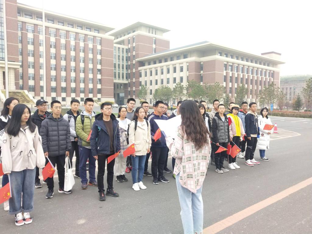 活动开始之前,2019级共青团员代表在鼎新楼前国旗下集合完毕,工作人员为每位学生分发了小国旗。随后音乐奏响,大家齐唱团歌,挥舞手中的小国旗,每个人青春洋溢、朝气蓬勃。随后,2019级各班团支部书记结合个人经历、工作经验以及个人感想依次进行“我与祖国共奋进”的主题演讲。演讲时,每一位同学激情澎湃,对于祖国70年栉风沐雨、砥砺前行所取得的成就,他们的脸上展现着满满的自豪感。