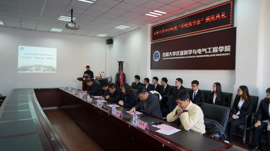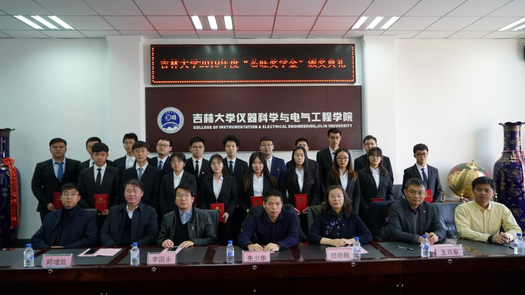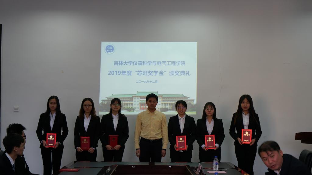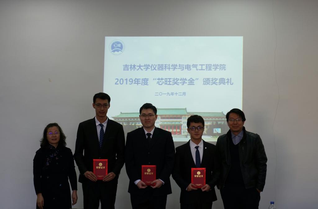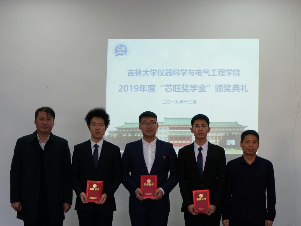 2019年度“芯旺奖学金”的决定》,此次获奖的19名学生为仪电学院2017级本科生,其中一等奖3名、二等奖3名、三等奖13名。《决定》宣读完毕后颁奖仪式正式开始,王言章教授、刘长胜教授为获得2019年度“芯旺奖学金”三等奖的同学颁奖,李国永先生、嵇艳鞠院长为获得2019年度“芯旺奖学金”二等奖的同学颁奖,朱少华先生、邱增凯教授为获得2019年度“芯旺奖学金”一等奖的同学颁奖。颁奖仪式结束后,获奖学生代表吴广栋同学汇报在校学习情况。在汇报中,他表达了对上海芯旺微电子技术有限公司的感谢和对领导老师的敬意,并表示成绩的取得离不开领导老师的关怀和社会及企业的帮助。作为大三学生,必将把握现在,珍惜时光,努力学习,刻苦钻研以报答所有关怀过、帮助过他们的人。