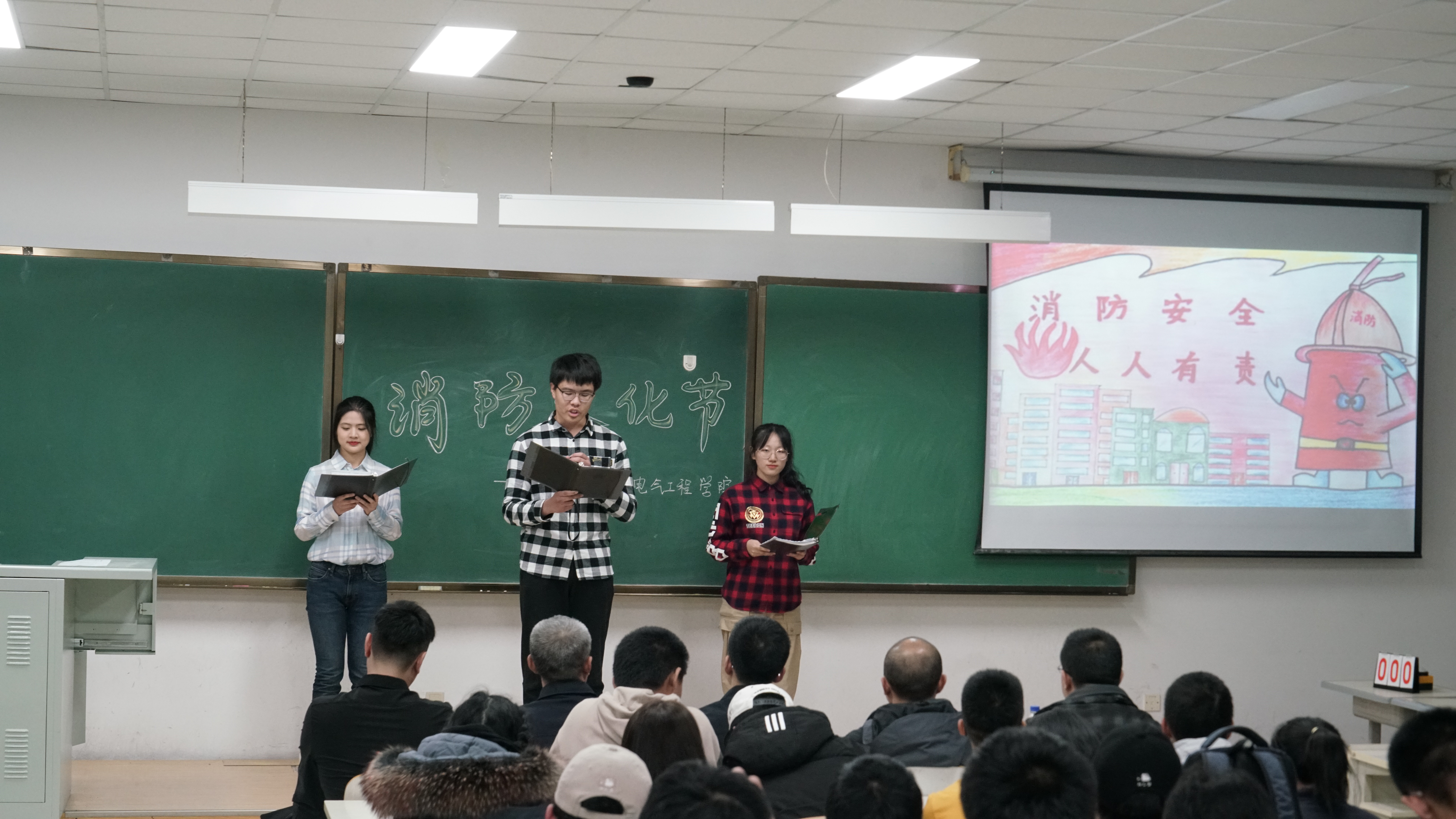 消防安全管理规定》,最后艾老师祝愿我院学子度过安全且充实的大学时光。艾老师演讲结束后,2020级的同学们依次上台展示消防安全宣传教育作品,展示的作品丰富多彩,贴近生活,既有趣又极具教育意义,赢得了全院师生的阵阵掌声。作品展示过后,进入消防安全知识竞答环节,各班代表们踊跃参与,争先作答。随后,主持人与现场观众互动,同学们举手抢答,气氛活跃。在经过激烈的抢答后,主持人公布了本次消防文化节作品的评选结果,并由边江老师、艾维斯老师、周伟老师依次为获奖班级颁发证书。活动最后,周伟老师为本次活动总结讲话,他高度肯定了活动开展的意义,并就大学生群体与防范火灾之间的关系做出阐述;最后,周老师呼吁同学们在日常生活中关注消防安全,提高消防意识。至此,本次消防文化节活动圆满落下帷幕。