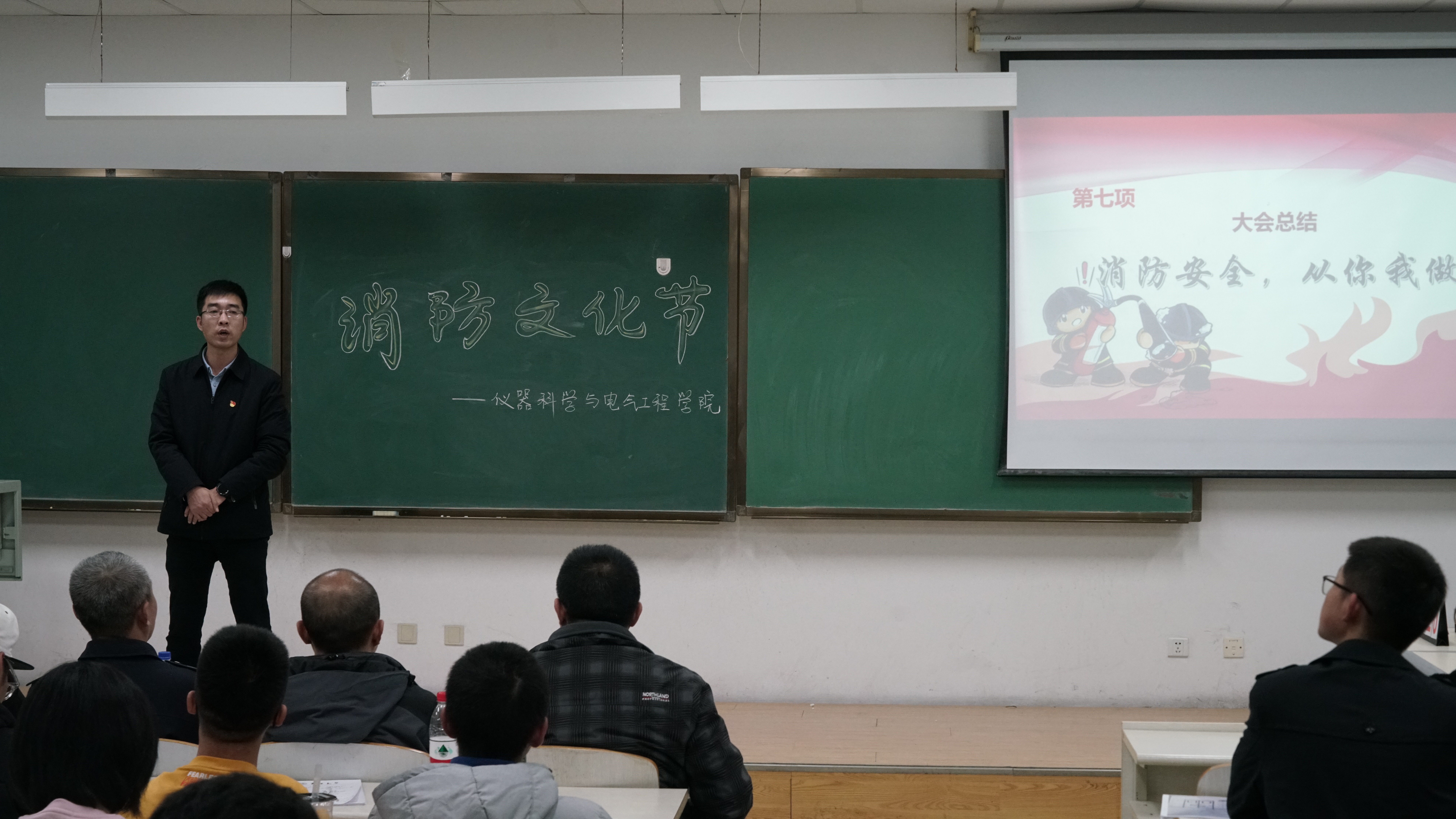 于李四光楼204教室举办第五届消防文化节活动。学院党委副书记兼副院长,2017、2018级辅导员周伟老师,朝阳校区保卫办艾维斯老师,学院行政办公室主任边江老师,朝阳校区保卫办陈亮老师、魏来老师,2019、2020级辅导员马姗姗老师,辅导员孙鹏博老师共同出席了本次活动。